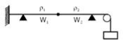 Question: Two wires $ W _1 $ and $ W _2 $ have the same radius r and respective densities $ {\rho_1} $ and $ {\rho_2} $ such that $ {\rho_2}=4{\rho_1}. $ . They are joined together at the point O, as shown in the figure. The combination is used as a sonometer wire and kept under tension T. The point O is midway between the two bridges. When a stationary waves is set up in the composite wire, the joint is found to be a node. The ratio of the number of antinodes formed in $ W _1 $ to $ W _2 $ is - [JEE Online 08-04-2017]
