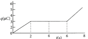 Question: The charge on a capacitor plate in a circuit, as a function of time, is shown in the figure, What is the value of current at t = 4 s? [JEE Main Online Paper Held On 12-Jan-2019 Evening]