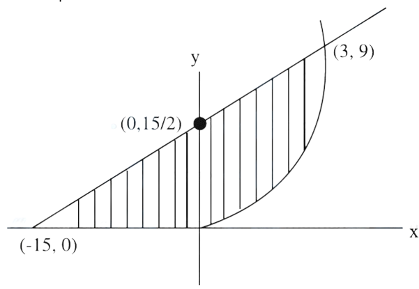 $A=\int_0^{3}(\frac{x+15}{2}-x^{2}) dx+\frac{1}{2} \times \frac{15}{2} \times 15$