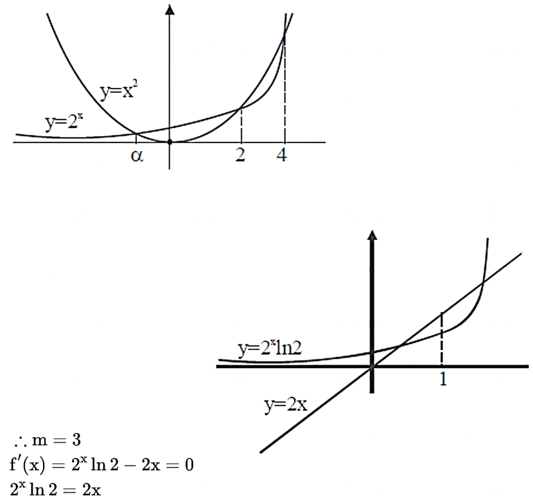 Let $f(x)=2^{x}-x^{2}, x \in R$. If $m$ and $n$ are respectively the number of points at which the curves $y=f(x)$ and $y=f^{\prime}(x)$ intersects the $x$-axis, then the value of $m+n$ is